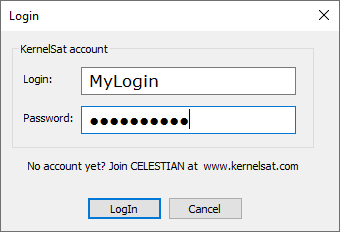 | Fig. Authentication window. Please use Kernelsat web account credentials. |