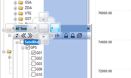 DATA, SAT Tree and some other windows / toolbars may be placed in preferred location / form. Just click and hold window title and start moving it.
